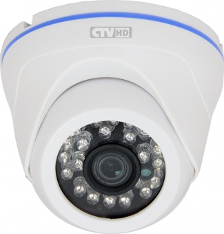 Видеокамера CTV-HDD361A купольная, внутренней установки, 1.0M, CMOS 1/4”H 42, AVS 8901, технология передачи видеосигнала на расстояние до 500 метров по коаксиальному кабелю, дальность подсветки 20 м, объектив f=3,6 мм, раб. темп. -10˚C ~ 50˚C, питание 12VDC, класс защиты IP55, белый