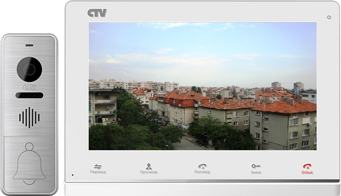 Комплект цветного видеодомофона формата AHD (антивандальная вызывная панель CTV-D4001 и цветной монитор CTV-M4101AHD), монитор с экраном 10" разр 1024 х600, Hands free, встроенный регистратор, детектор движения (4 канала), технология Touch Screen, встроенная память, слот для micro SD (до 128ГБ), встроенный модуль Wi-Fi, поддержка Internet Explorer, Chrome, Firefox; моб устройств с ОС Android,iOS. Поддержка работы в сети LAN (100 Мб/сек) накладное крепление, встр. ист пит, подкл до 2 выз. панелей, 2 в/камер и 4 мониторов, цв. корпуса - белый/черный