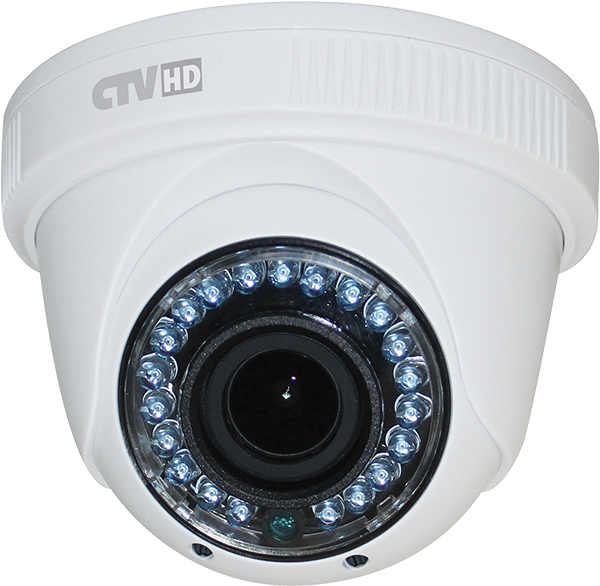 Цветная купольная видеокамера стандарта AHD, разрешение 1080p, автоматическое переключение режимов"День/Ночь" (TDN), варифокальный объектив с внешней регулировкой, ИК подсветка до 20 метров, для установки внутри/вне помещений.