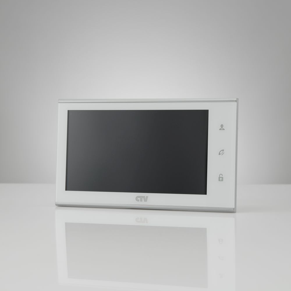 Комплект видеодомофона в одной коробке (вызывная панель CTV-D4003AHD и монитор CTV-M2702MD), панель 1000 твл, монитор с экраном 7", Hands free, детектор движения, панель из стекла с сенсорным управлением "Easy buttons", встроенная память, встроенный слот для micro SD (до 32ГБ), , встроенный источник питания, подкл до 2 выз. панелей и 4 мониторов, цв. корпуса - белый/черный
