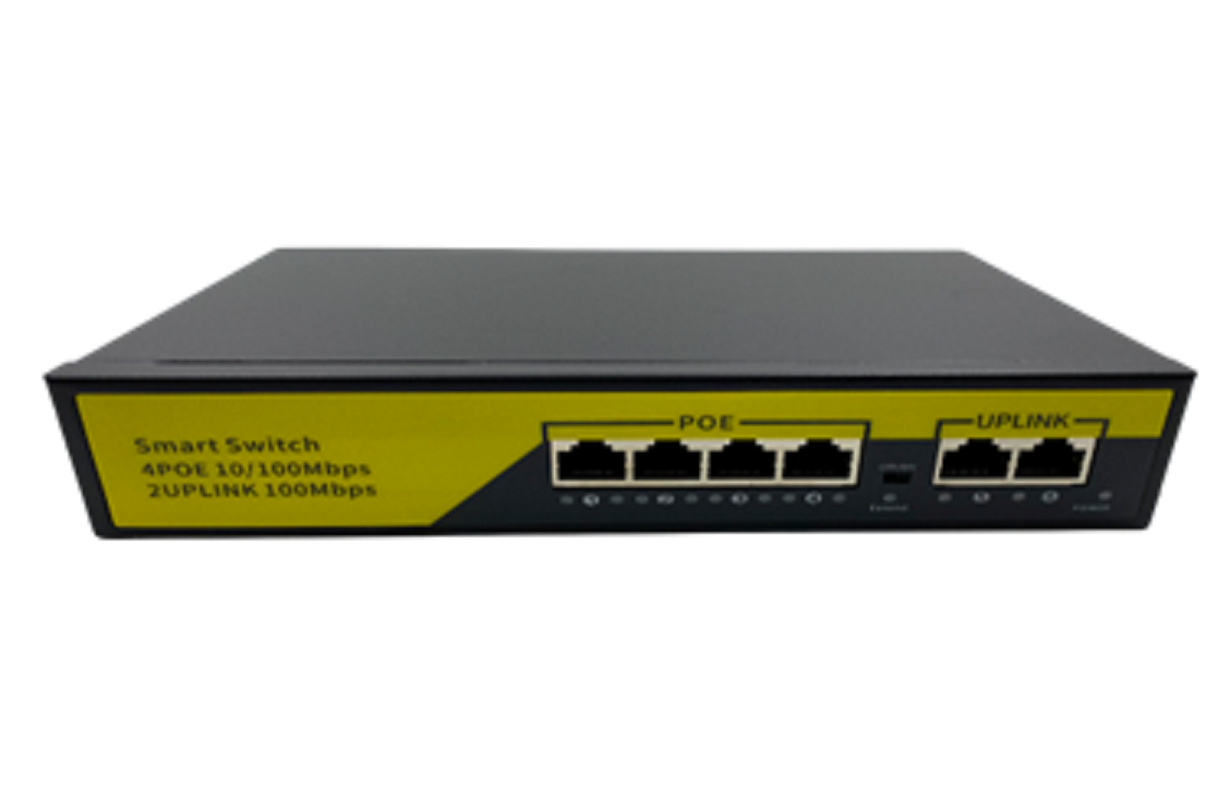 Неуправляемый 6-портовый PoE-коммутатор, 4 х 10/100 Мб/с PoE RJ45 (порты 1 – 4), 2 х 10/100 Мб/с Uplink RJ45 (порты 5 – 6), поддержка IEEE802.3, IEEE802.3u, IEEE802.3x, IEEE802.3af, IEEE802.3at, бюджет PoE до 78 Вт, Макс. параметры выходной мощности одного порта 30 Вт